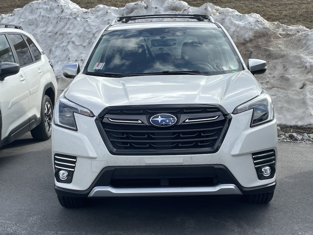 Crystal White Pearl 2024 Subaru Forester Touring AWD Lineartronic CVT 2.5L 4-Cylinder DOHC 16V certified pre owned, Forester Touring, 4D Sport Utility, 2.5L 4-Cylinder DOHC 16V, Lineartronic CVT, AWD, Crystal White Pearl, Black Leather, Navigation System.