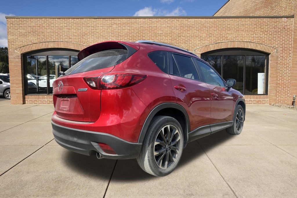 Our One Owner 2016 Mazda CX-5 Grand Touring AWD with the Technology Pack is presented in Soul Red Metallic and is a blast to drive! Powered by a 2.5 Liter 4 Cylinder offering 184hp matched to a 6 Speed Automatic transmission for astonishing passing authority. You'll love the handling and grip of our All Wheel Drive SUV that boasts all-weather capability; plus, you'll conquer more highways with the incredible fuel economy of nearly 29mpg on the highway! Brilliantly engineered, our Mazda CX-5 Grand Touring is the pinnacle of aerodynamic design. It cuts through the air precisely thanks to its sleek stance and curvaceous build enhanced by prominent alloy wheels, fog lamps, and a sunroof.