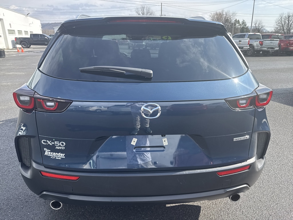 Blue Metallic 2025 Mazda CX-50 2.5 S Preferred Package AWD 6-Speed Automatic SKYACTIV® 2.5L 4-Cylinder DOHC 16V 4 WHEEL DRIVE/ALL WHEEL DRIVE, ONE OWNER, CLEAN CARFAX, SERVICED HERE, FREE LIFETIME STATE INSPECTIONS, ONLY AT BLAISE ALEXANDER CHEVY GMC OF SELINSGROVE, 8 Speakers, Air Conditioning, AM/FM radio, Rear window defroster, Remote keyless entry, Steering wheel mounted audio controls, Wheels: 17" x 7J Aluminum Alloy Black Metallic Finish.