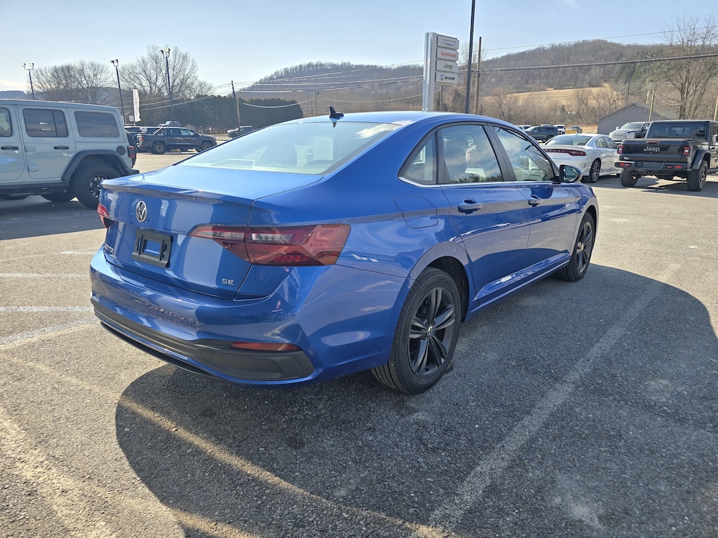 This loaded Jetta 1.5T SE combines Volkswagen's renowned build quality, strong safety ratings with available driver assistance features, and impressive value in a clean, low-maintenance sedan. It's an outstanding choice for anyone seeking a sporty, fuel-efficient compact with panoramic sunroof views, heated leatherette comfort, bold black wheel accents, and the sophisticated blue finish that stands out with understated elegance on every drive.